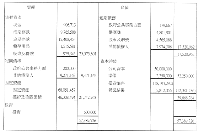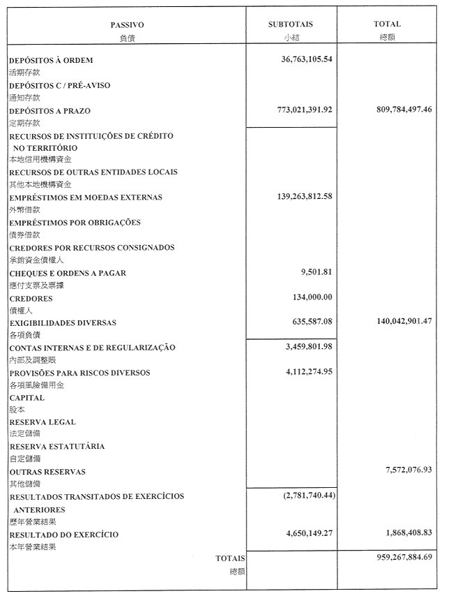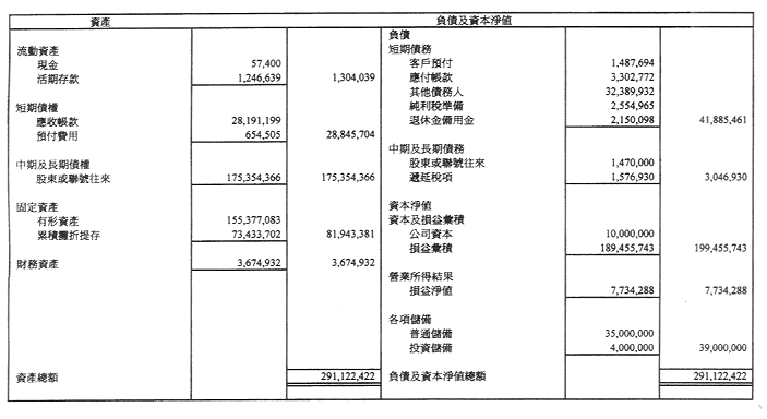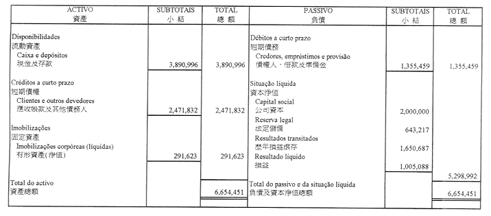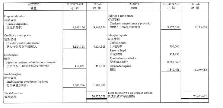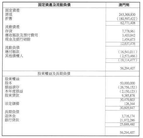 本公司二零零一年全年虧蝕澳門幣2,150,123元。