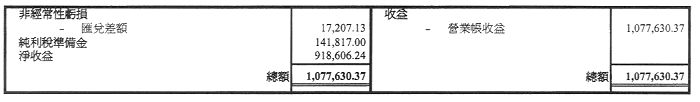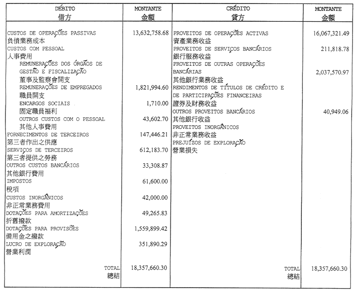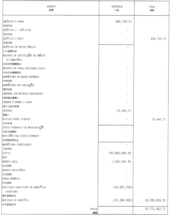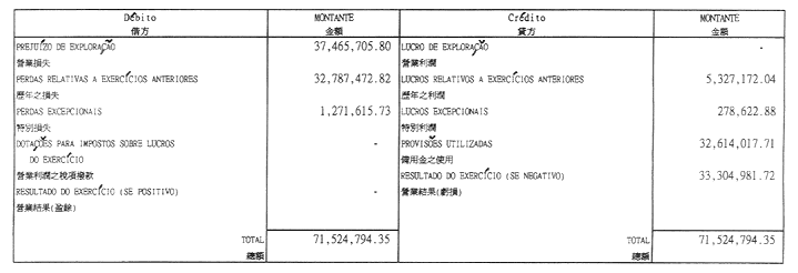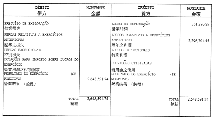 本公司截止二零零一年十二月三十一日止之年度帳目,業經核數師審核,本年度之除稅後虧損為澳門幣一百七十八萬一千三百五十一元(MOP$1,781,351.00)。