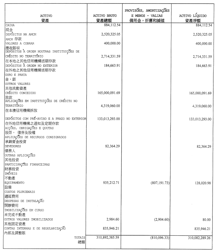 本核數師已根據國際審計標準審核澳門保險有限公司截至二零零一年十二月三十一日止年度的財務報表,並在二零零二年一月二十一日就這些財務報表發表了無保留意見的報告。