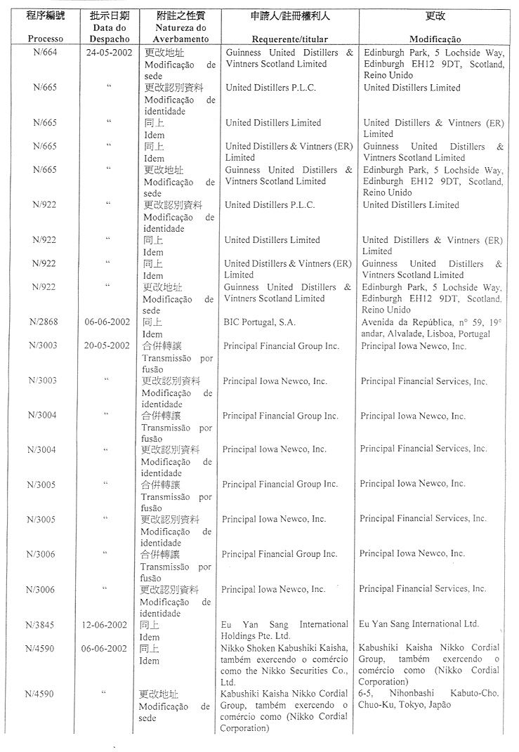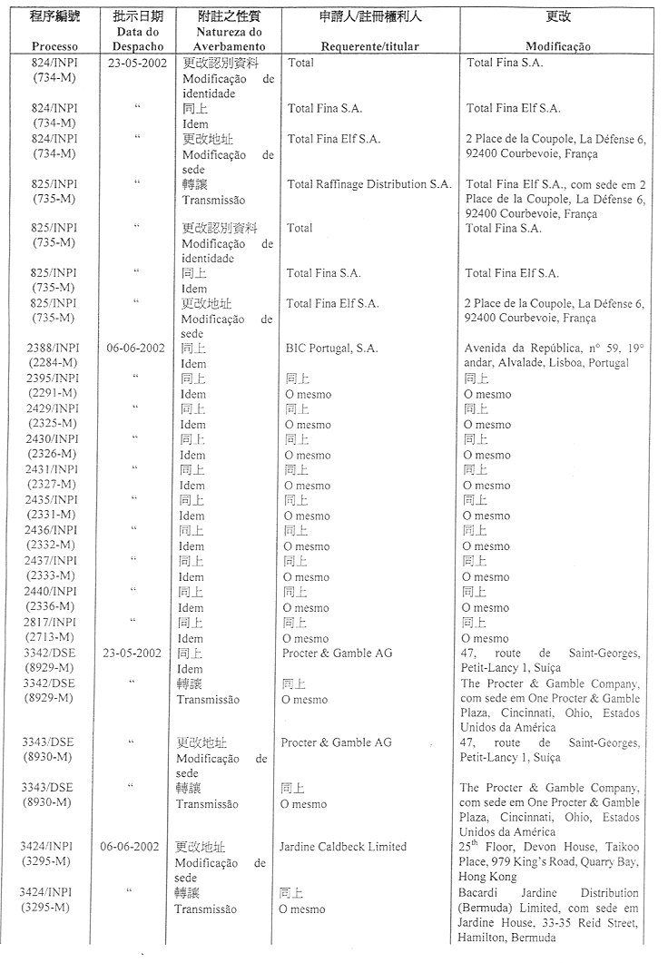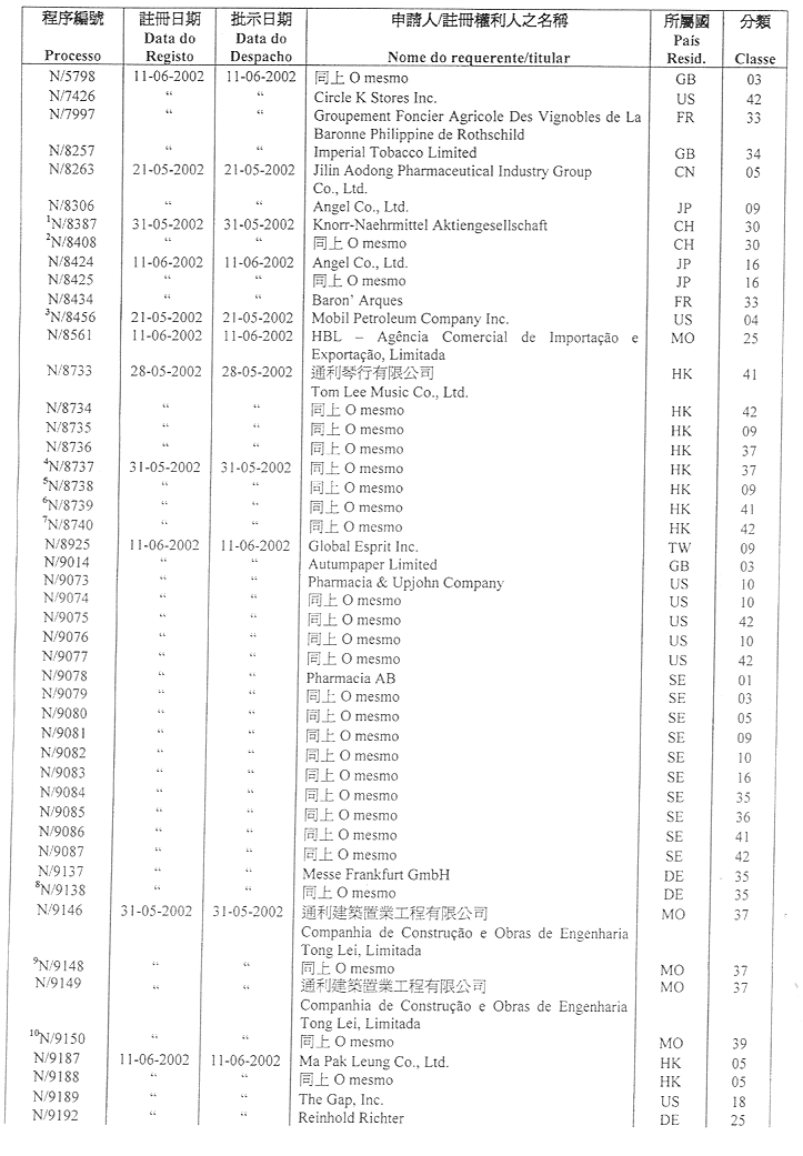 2002年6月5日第二十三期,第二組之《澳門特別行政區公報》: