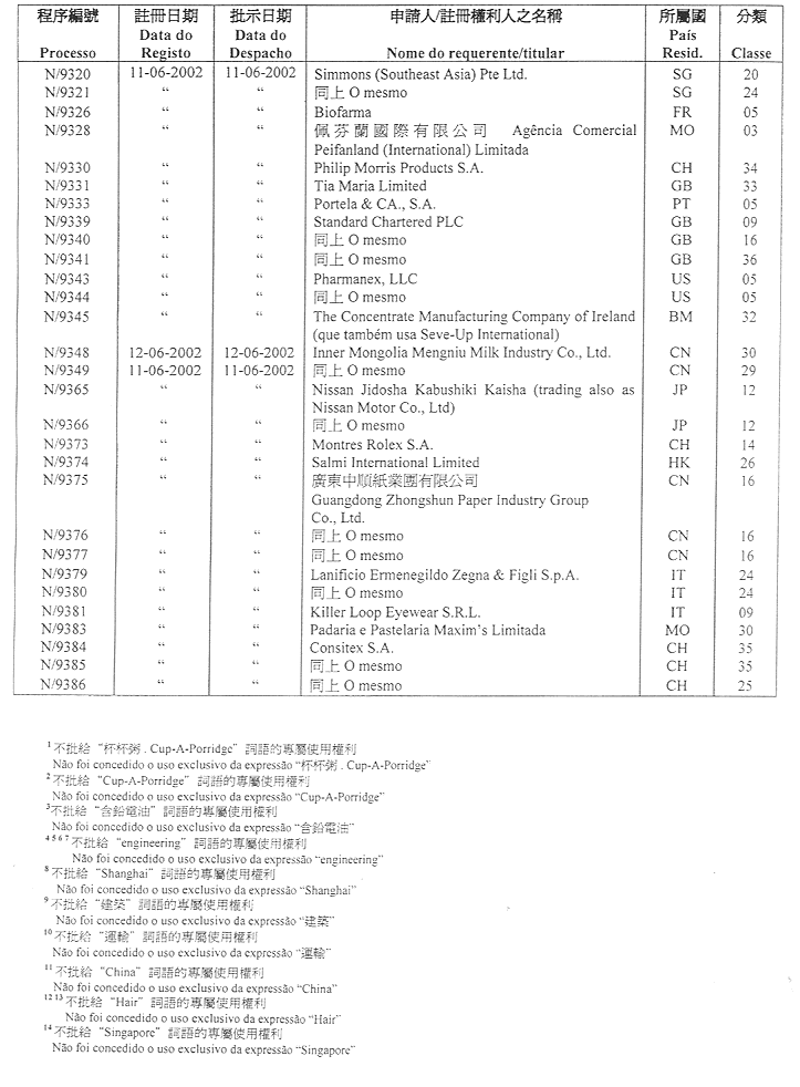 商標編號 N/9186 — 在批給表內,(批示日期)原文為:“ 19-02-2002”
