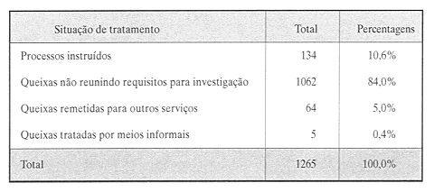 - Quadro III Situação de tratamento das queixas recebidas em 2001
