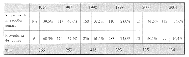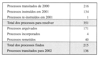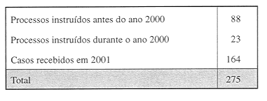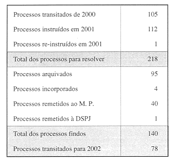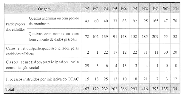 - Quadro VI Quadro comparativo dos processos instruídos entre 1992 e 2001 (segundo a origem)