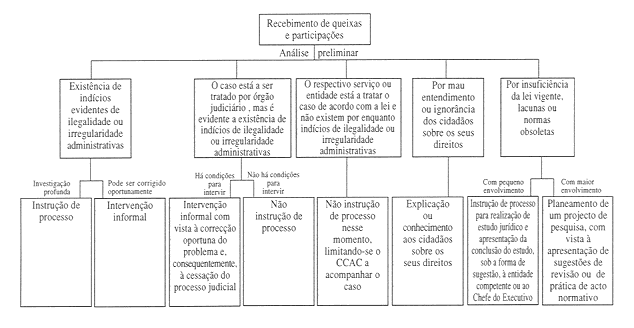 Prosseguindo com o princípio de "ser rigoroso na instrução de processos", o CCAC procedeu em 2001 à instrução de 134 processos, número semelhante ao verificado em 2000. Do total dos casos dirigidos ao CCAC, 1062 não reuniram condições necessárias à instrução de um processo, 64 foram encaminhados para os serviços competentes e uma parte de processos respeitantes à provedoria de justiça foram, entretanto, resolvidos através de intervenção informal.