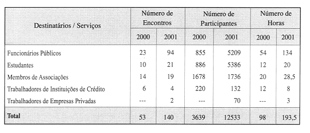 - Quadro XVII Número de participações das palestras destinadas aos Funcionários Públicos entre 1999 e 2001