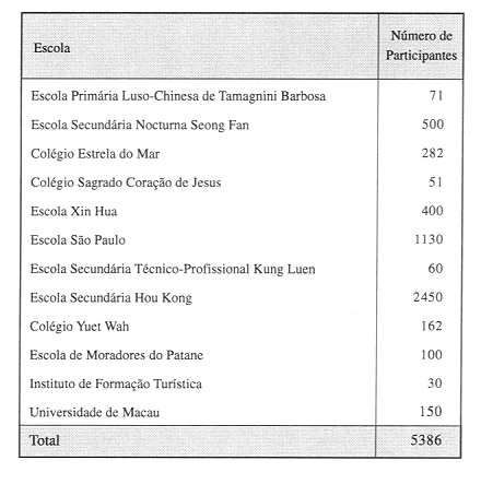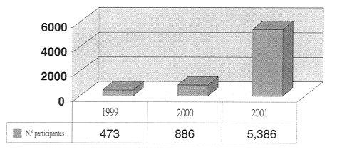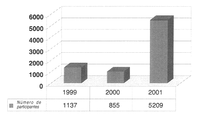- Quadro XIX Número de participantes das palestras destinadas aos estudantes entre 1999 e 2001