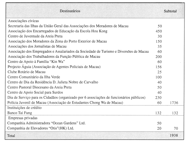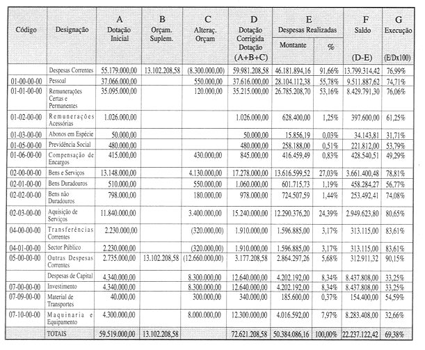 Encerradas as contas relativas a 2000 e determinado o respectivo saldo, foi apresentado, nos termos da legislação em vigor, o orçamento suplementar destinado a integrar o excesso de saldo, no montante de MOP $ 13 102 208,58 (treze milhões, cento e duas mil, duzentas e oito patacas e cinquenta e oito avos). Este orçamento suplementar veio a ser aprovado pelo Despacho do Chefe do Executivo n.º 103/2001, publicado no Boletim Oficial da RAEM - I Série, n.º 23, de 4 de Junho de 2001.