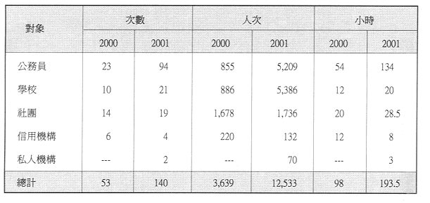 - 圖表十六 2001年以公務人員為對象的講座統計