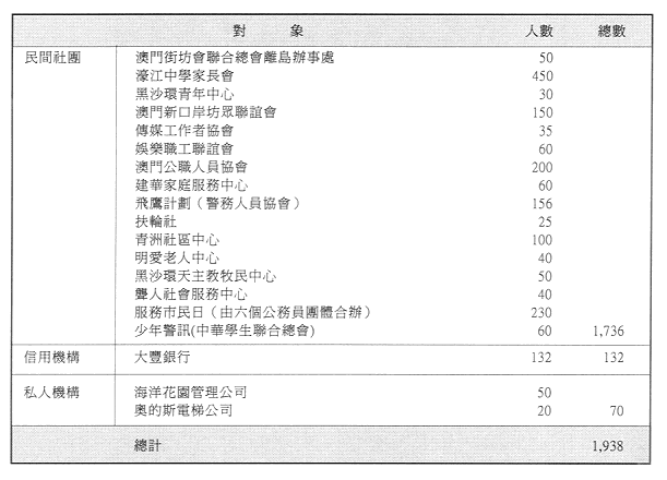 - 圖表二十 2001年社團、信用機構及私人機構講座統計
