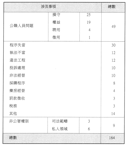 - 圖表十二 2001年行政申訴範疇的投訴/舉報所涉及內容