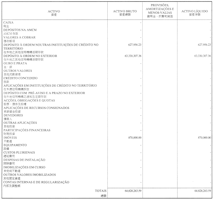Gonçalo Parreira Neves,現職獨任監事,現履行《商法典》和多達亞洲銀行股份有限公司章程賦予的職責,對由董事會/清算委員會提交截至二零零二年十二月三十日的資產負債表、損益表、財務演算附表、報告和盈餘運用建議書提出報告和意見。