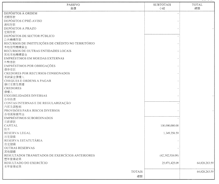 貴銀行之控股公司——多達亞速爾銀行於二零零零年度被Banco Santander Central Hispano收購,並決定終止貴銀行之業務。因此,貴銀行之前董事及貴銀行於二零零零年十一月二十四日舉行之股東特別大會議決將 貴銀行解散,而 貴銀行之清盤委員會乃以清盤之基準編製截至二零零二年十二月三十日止期間之賬目,有關詳情見賬目附註二。