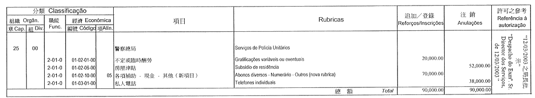 摘錄自保安司司長於二零零三年三月五日作出的第15/SS/2003號批示:
