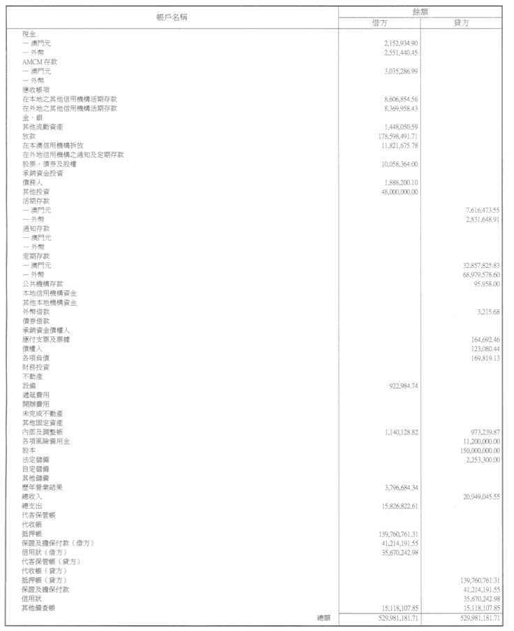 為更全面了解 貴銀行澳門分行的財務狀況及經營業績,隨附的賬目摘要應與經審核的賬目一併參閱。