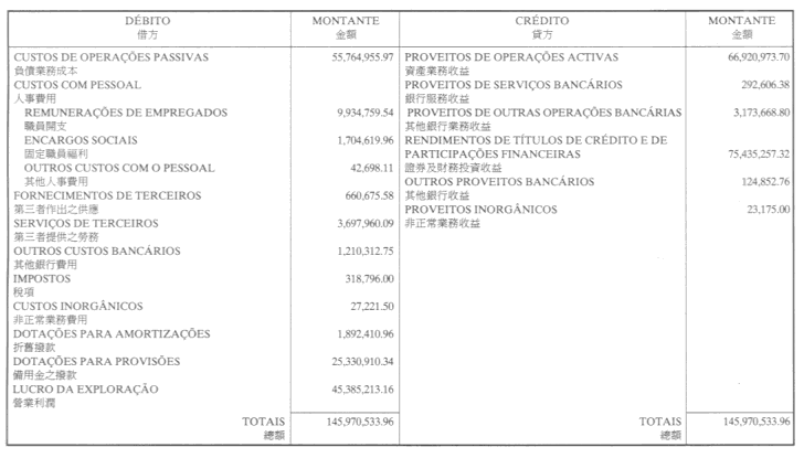 本年度之淨利息收入微跌了1%,即澳門幣七萬元。其他營運收入下跌了15%,即澳門幣六十八萬元。由於有九十萬元之一般備用金回撥,本行二零零二年度錄得稅前盈利七百二十萬元,與去年度之業績相若。