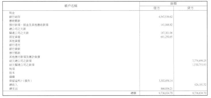 註:上列之資產負債表及營業結果演算是依據經已審核之帳冊編製。