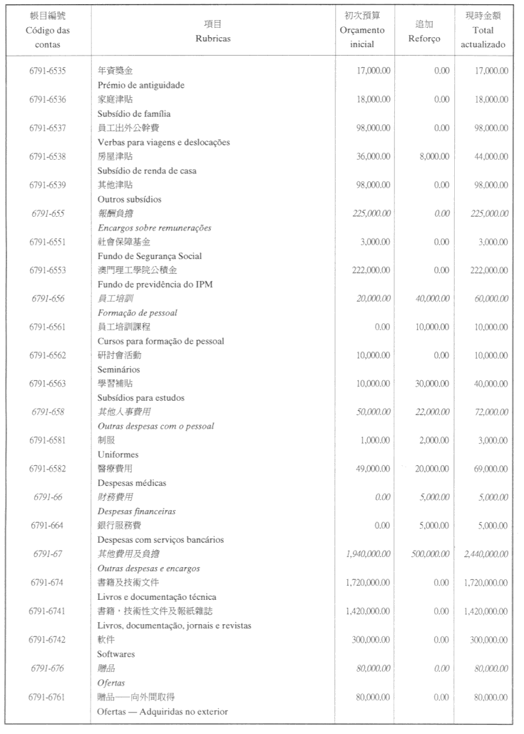 根據九月二十七日第53/93/M號法令第十九條之規定,現刊登有關澳門理工學院二零零三年度本身預算之第二修改,該修改獲社會文化司司長在二零零三年五月十三日及經濟財政司司長在同年五月二十七日之批示核准: