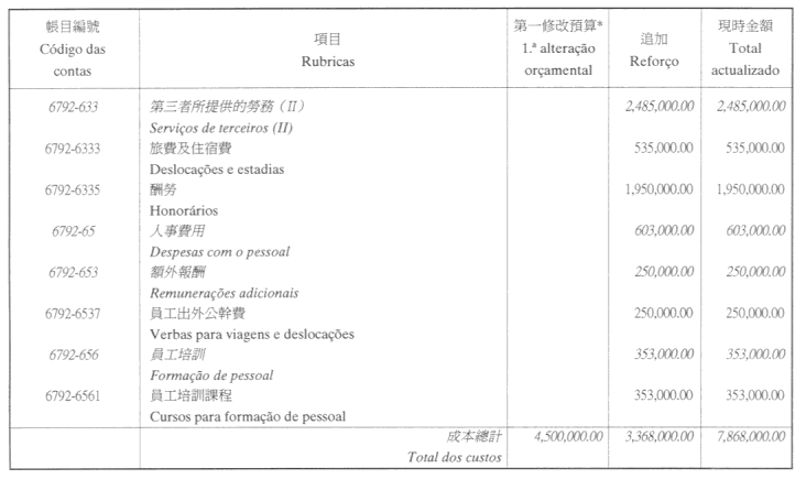 Nuno Miguel Manso Lisboa Epifânio —— 獲准以個人勞動合同方式提供法律性質的工作,自二零零三年五月五日起,為期兩年。
