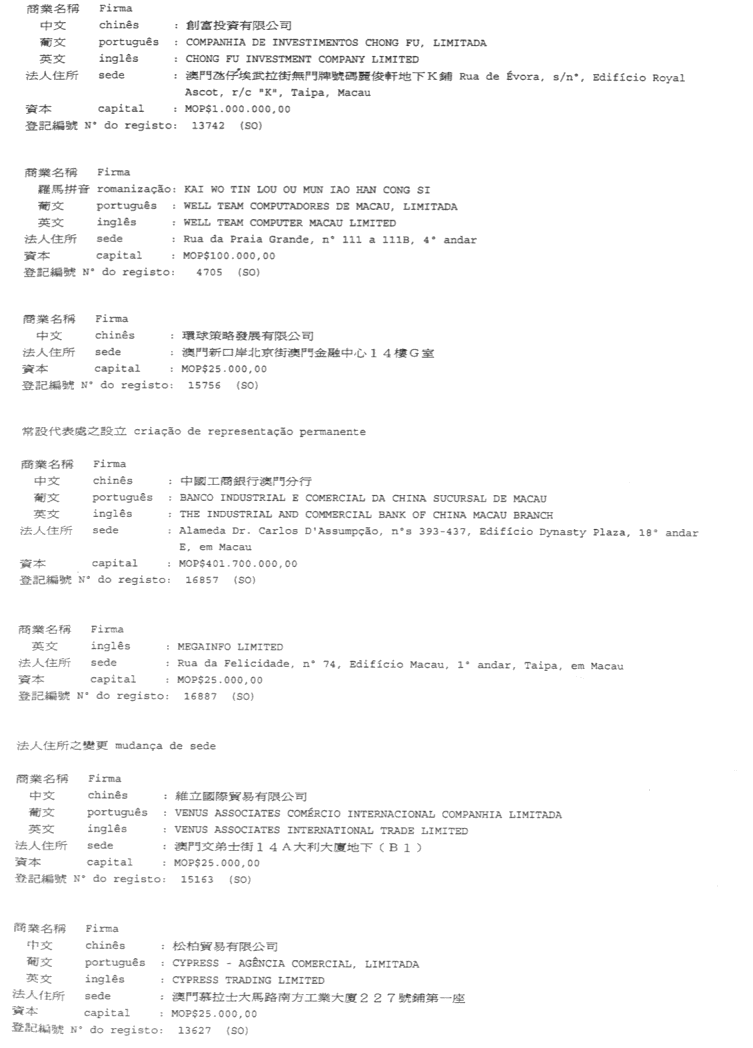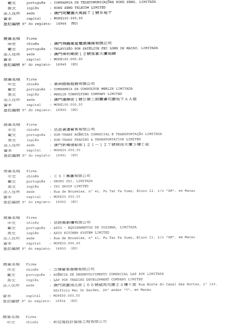 CONSERVATÓRIA DOS REGISTOS COMERCIAL E DE BENS MÓVEIS