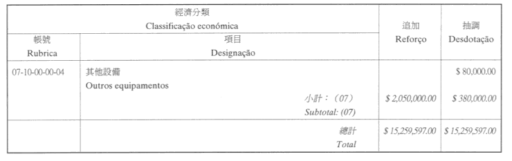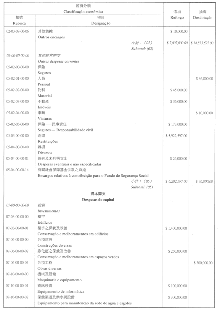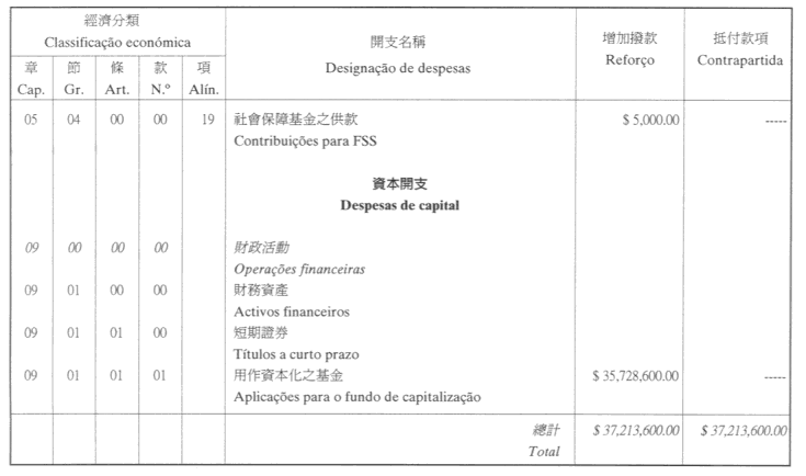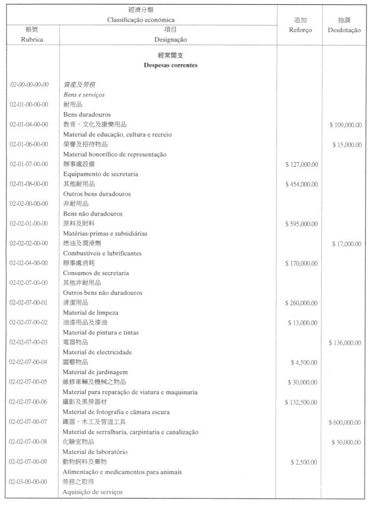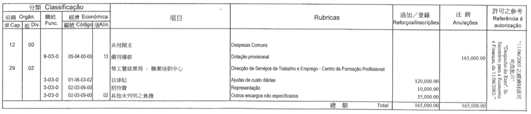 Para os devidos efeitos se declara que, ao abrigo do artigo 29.º, alínea 1), dos Estatutos do Instituto para os Assuntos Cívicos e Municipais, aprovados pela Lei n.º 17/2001, de 17 de Dezembro, e do artigo 19.º do Decreto-Lei n.º 53/93/M, de 27 de Setembro, a tabela de despesa do orçamento privativo do IACM, aprovado por Despacho do Chefe do Executivo n.º 65/2003, de 5 de Março, foi objecto da seguinte alteração: