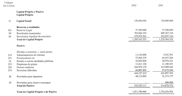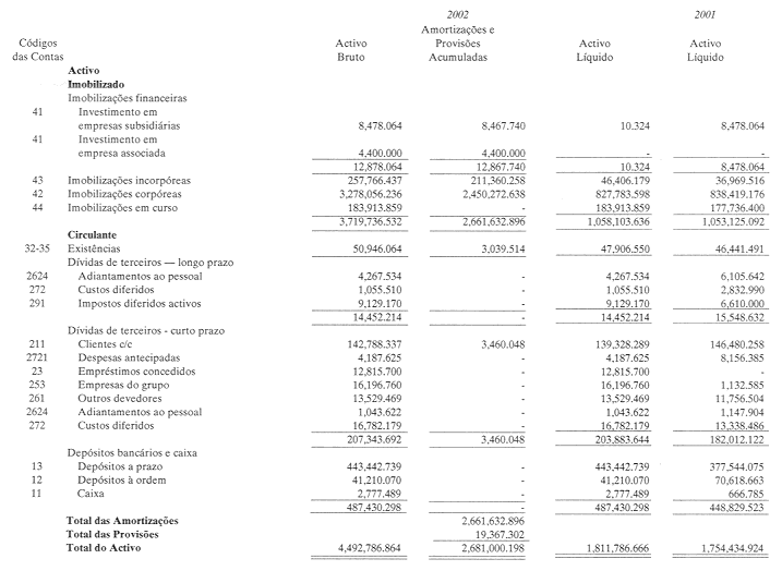 Conforme parecer do nosso auditor, o referido relatório financeiro corresponde plenamente ao resultado dos lucros do exercício sobre o ano 2002 e aos prejuízos e fluxo de caixa equacionados até dia 31 de Dezembro de 2002 da mencionada Sociedade.