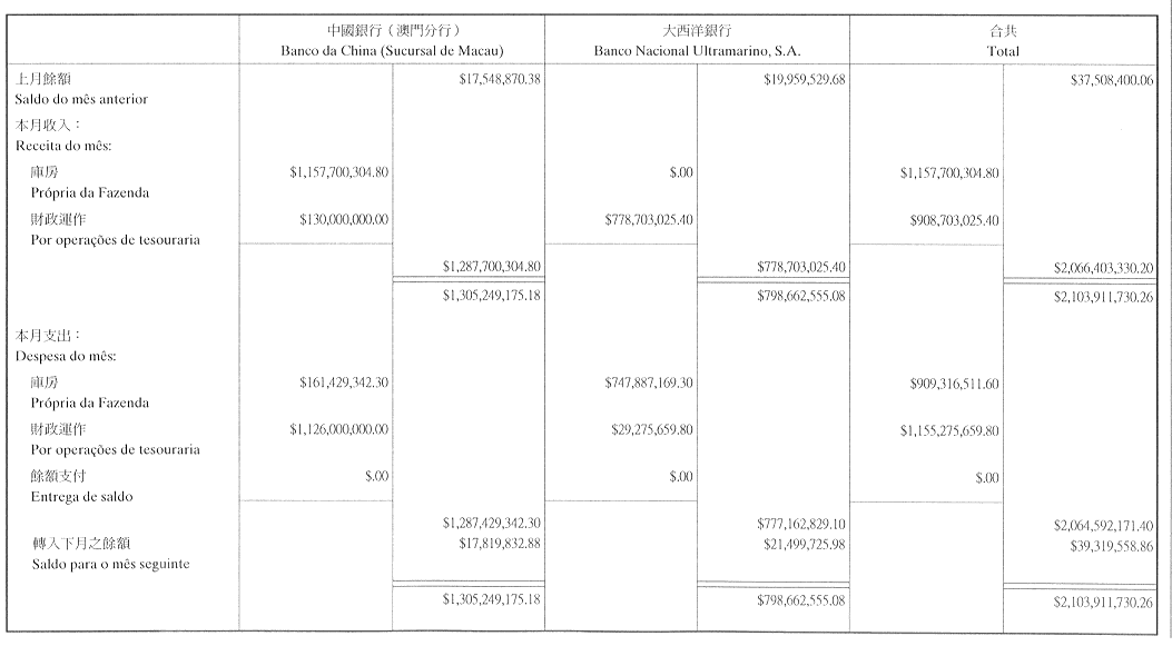 備註:庫房本身收入中的澳門幣$315,069.10為從支付中扣減之退回款額。