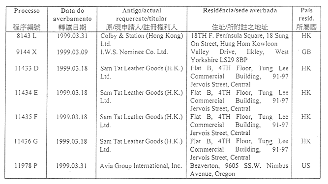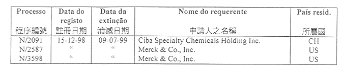 申請人:Chugai Boyeki (H.K.) Ltd., sociedade organizada e existindo segundo as leis de Hong Kong.