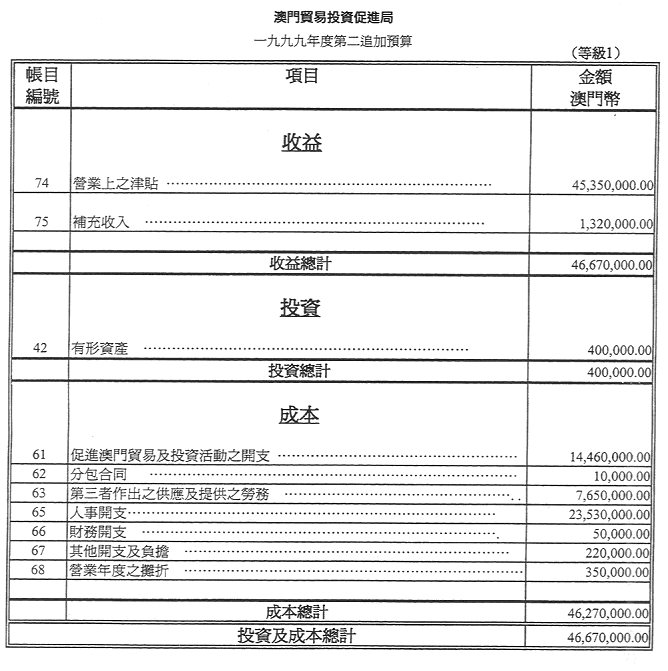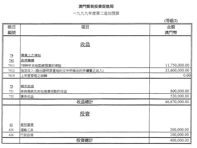 澳門貿易投資促進局行政管理委員會,於一九九九年十二月三十一日