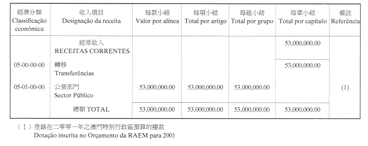 根據十二月四日第11/2000號法律第三十八條第一款規定,立法會議決通過其二零零一年本身預算。
