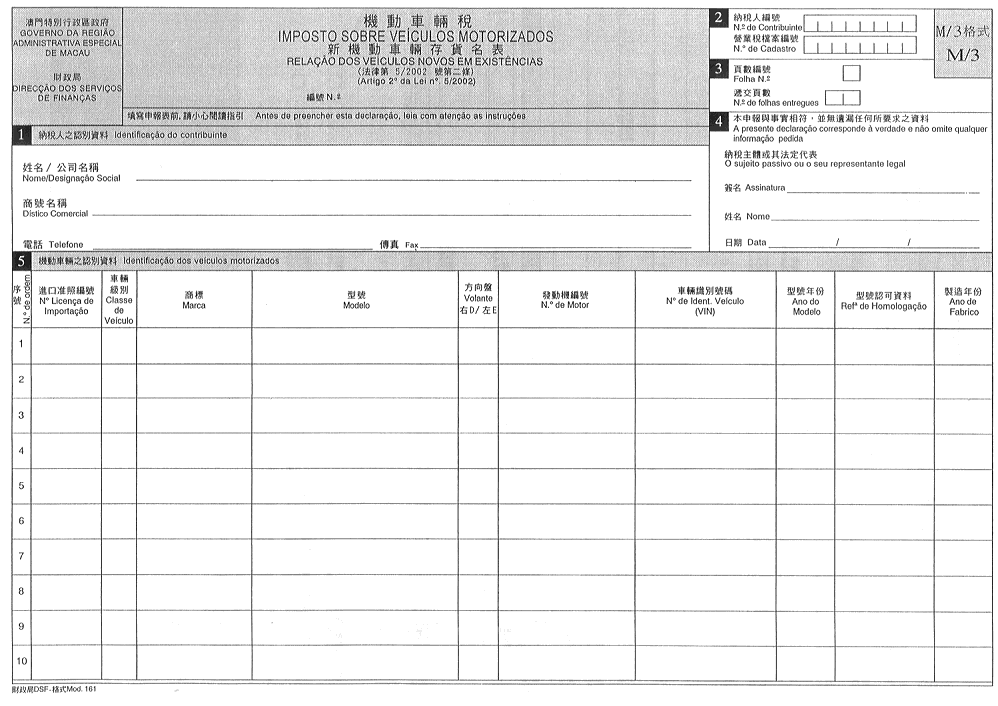 一、制訂第5/2002號法律第二條所指的新機動車輛存貨名表M/3。