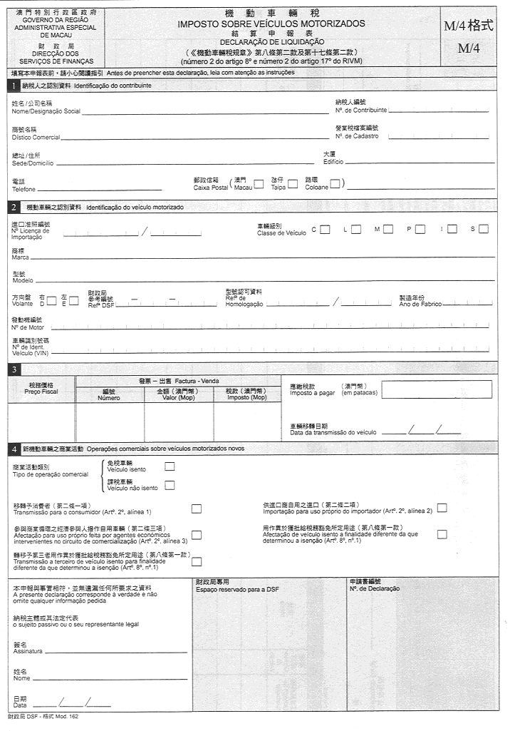二、制訂《機動車輛稅規章》第八條第二款及第十七條第二款所指的結算申報表M/4。