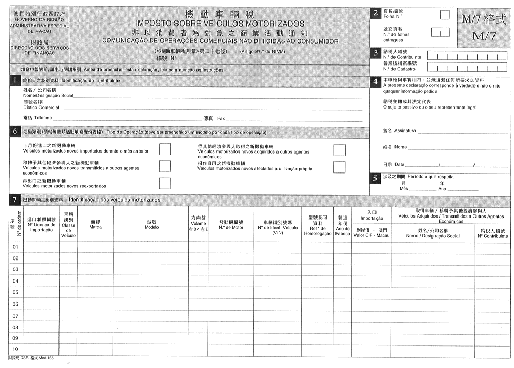 四、制訂《機動車輛稅規章》第二十七條第二款所指的非以消費者為對象之商業活動通知M/7。