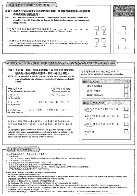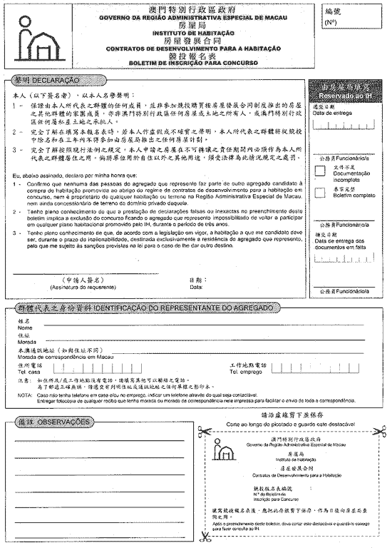 - 二、 為適用上款規定之效力,群體應在所定之日期及時間內到房屋局;如由於缺乏合理解釋而不到場者,則喪失選擇之權利,且其名次自動轉列於第九條第八款所指之總名單之末尾。