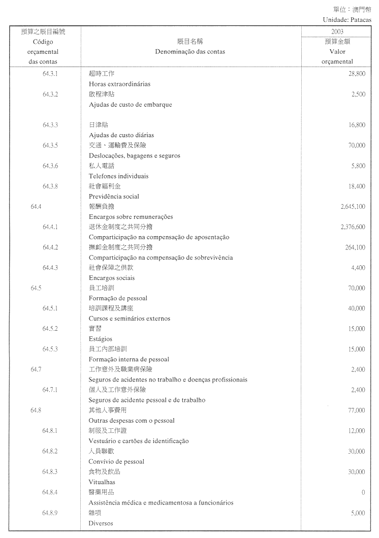 司法、登記暨公證公庫二零零三財政年度本身預算