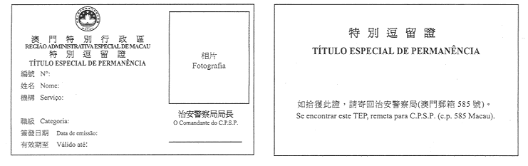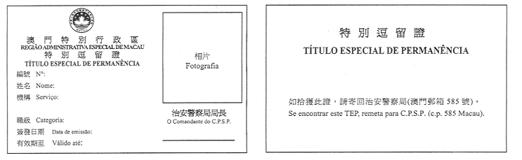 特別逗留證持有人獲許可於該證所載期間在澳門特別行政區逗留,該期間最長為三年,相當於持有人的最長工作任期,並可續期。