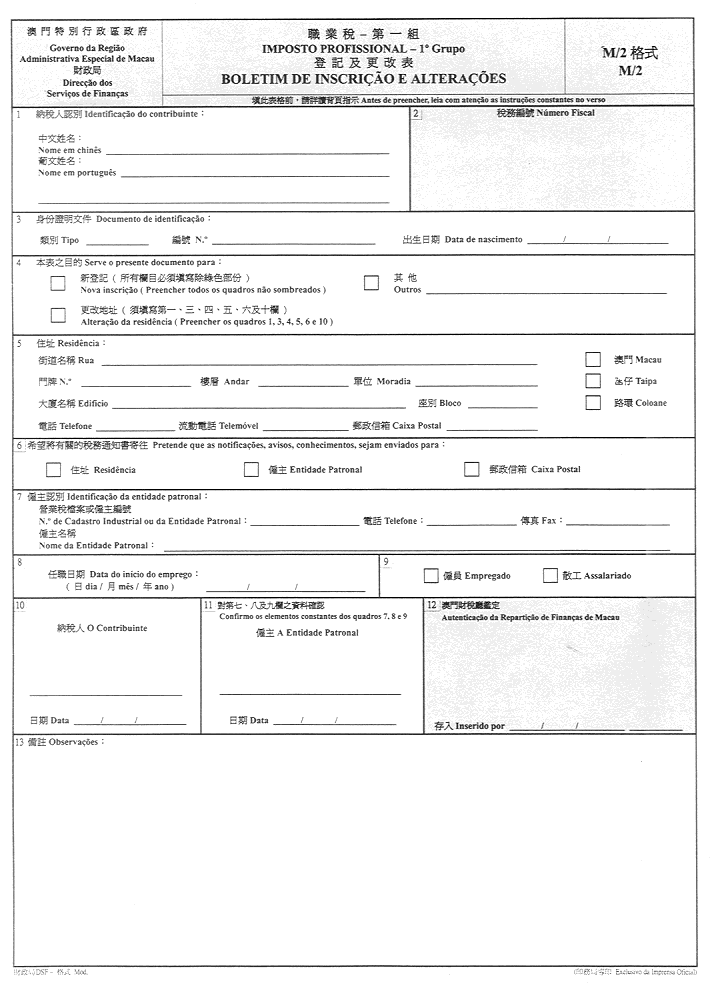 一、按照本批示附件一修改《職業稅規章》第二十九條所載的M/2格式印件,附件一為本批示的組成部份。