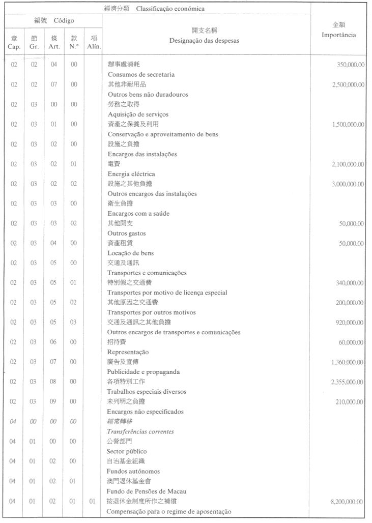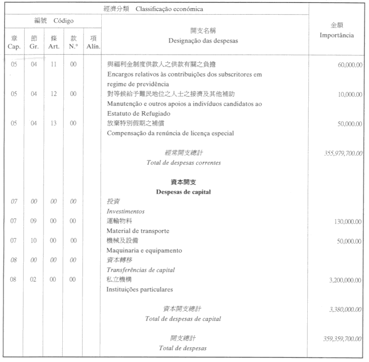 核准社會工作局二零零四年財政年度之本身預算,並於二零零四年一月一日起開始執行,預計收入及開支之金額均為澳門幣359,359,700.00(叁億伍仟玖佰叁拾伍萬玖仟柒佰元整),該預算為本批示之組成部份。