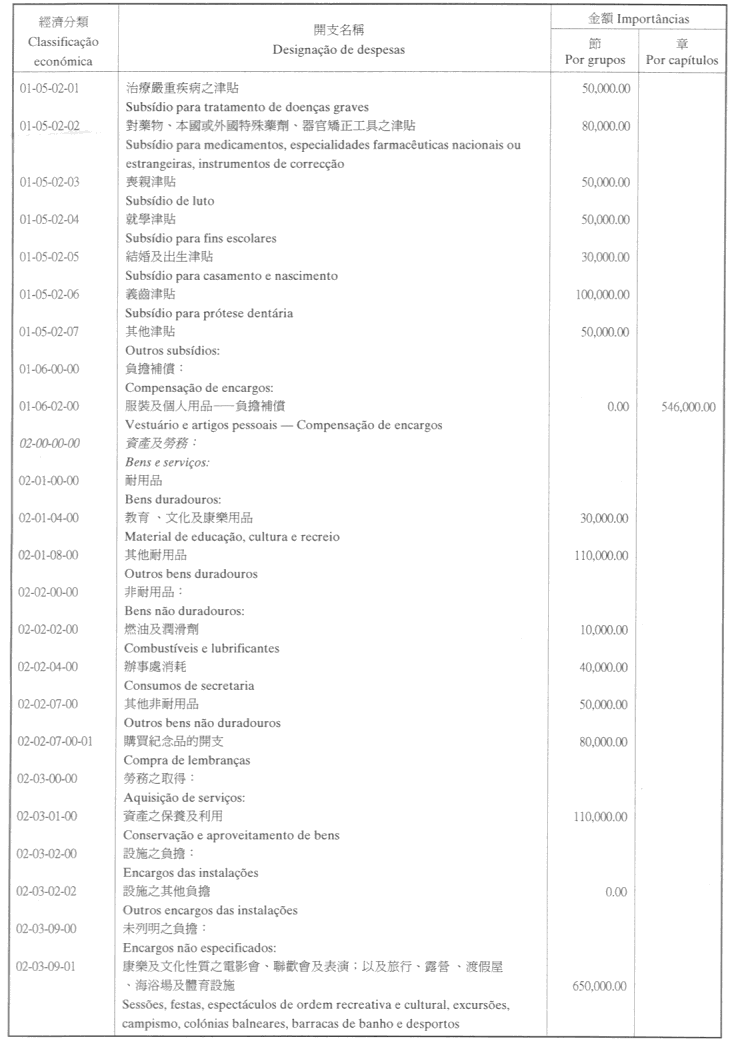 核准司法警察局福利會二零零四年財政年度本身預算,並由二零零四年一月一日起開始執行,預計收入及開支之金額均為$1,840,000.00(澳門幣壹佰捌拾肆萬元整),該預算為本批示之組成部份。