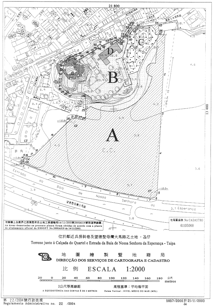 保留一幅位於氹仔島兵房斜巷及望德聖母灣大馬路之間的地塊,面積為169平方米,該幅土地已於物業登記局標示,屬編號第21298號土地的一部分,且在地圖繪製暨地籍局二零零三年十一月二十一日發出的第5857/2000號地籍圖中以字母“E”標示。該地籍圖附於本行政法規並為其組成部分。