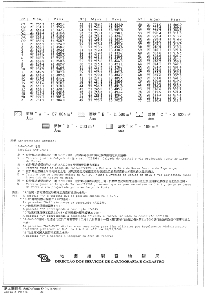二、鑑於上款的規定,第41/2000號行政法規保留的土地的總面積變更為42,187平方米,其周界及四至在附於本行政法規的地籍圖內列明。