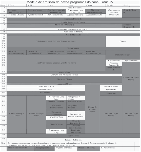 • Receita proveniente dos serviços de publicidade na televisão, produção dos programas especiais e transmissão em directo em Macau.