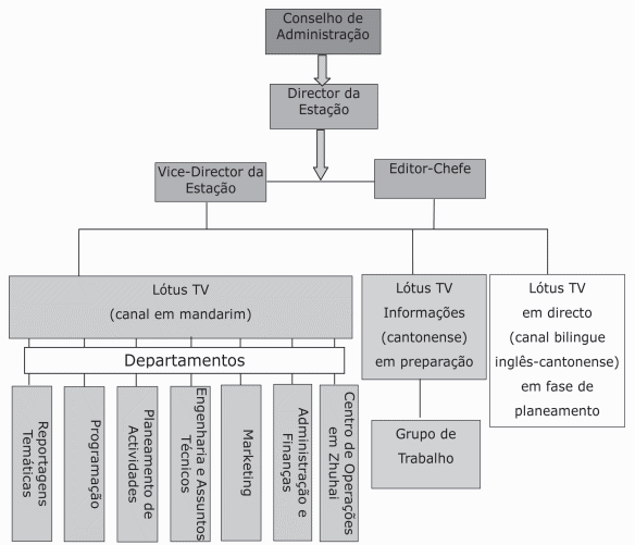 Organigrama dos órgãos de administração da Companhia de Macau Lotus TV Media via Satélite, Limitada