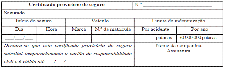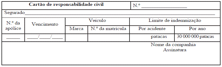 Os Modelos do cartão de responsabilidade civil automóvel e do certificado provisório de seguro constantes do Anexo II do Decreto-Lei n.º 57/94/M, de 28 de Novembro, passam a ser os constantes do Anexo II do presente regulamento administrativo, do qual fazem parte integrante.