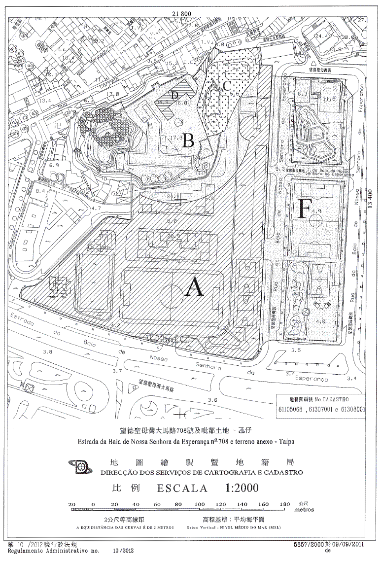 保留一幅位於氹仔島望德聖母灣大馬路面積為18,858平方米的地塊,該地塊在物業登記局無標示,而在地圖繪製暨地籍局於二零一一年九月九日發出的第5857/2000號地籍圖中則以字母“F”標示,有關地籍圖附於本行政法規並為其組成部分。