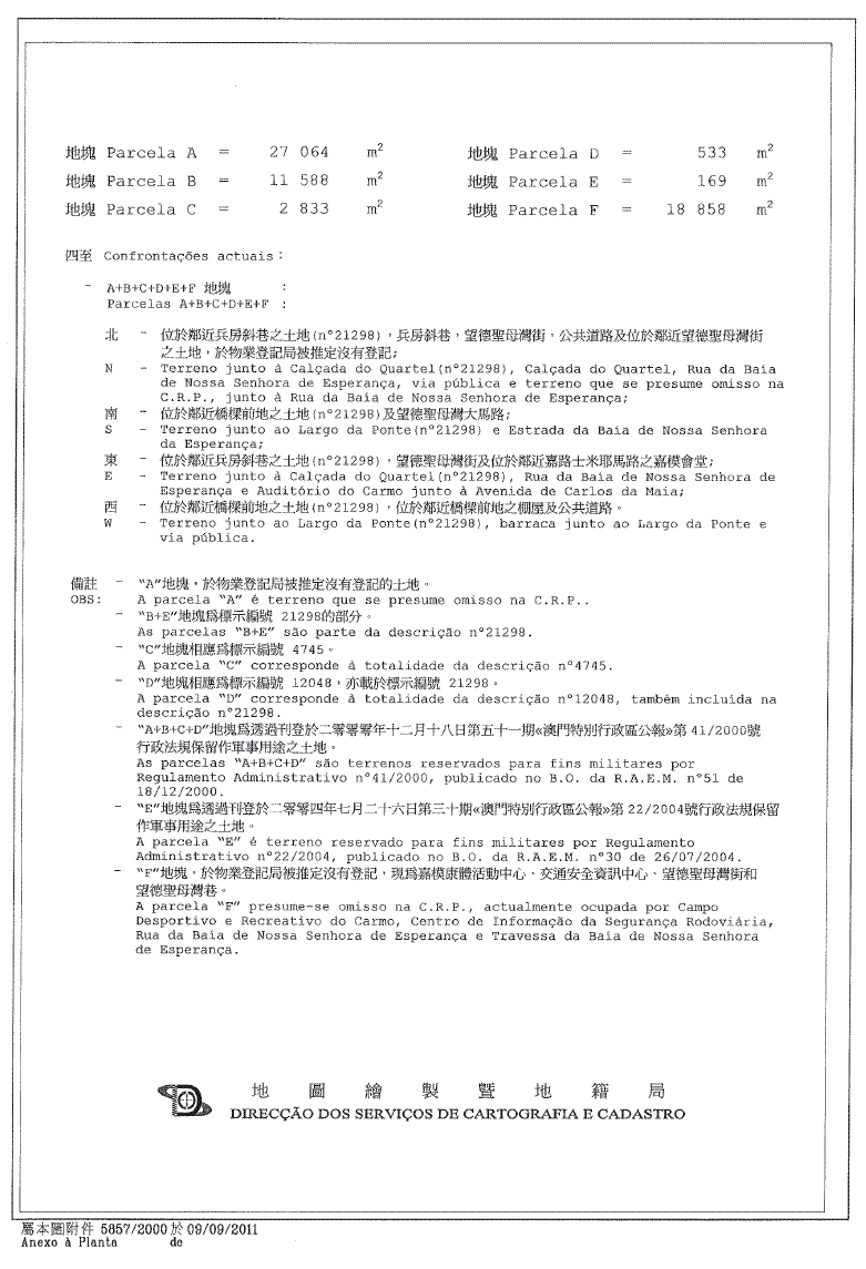 (二)面積為11,588平方米的地塊,在上述地籍圖中以字母“B”標示,並屬於在物業登記局第B48冊第142頁背面以第21298號標示的物業的組成部分;