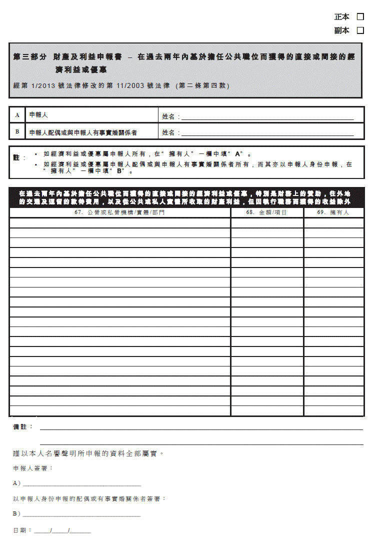 Por ter saído inexacta a versão chinesa da Parte III do Anexo I da Lei n.º 1/2013, publicada no Boletim Oficial da RAEM n.º 4/2013, I Série, de 21 de Janeiro, a páginas 60, novamente se publica: