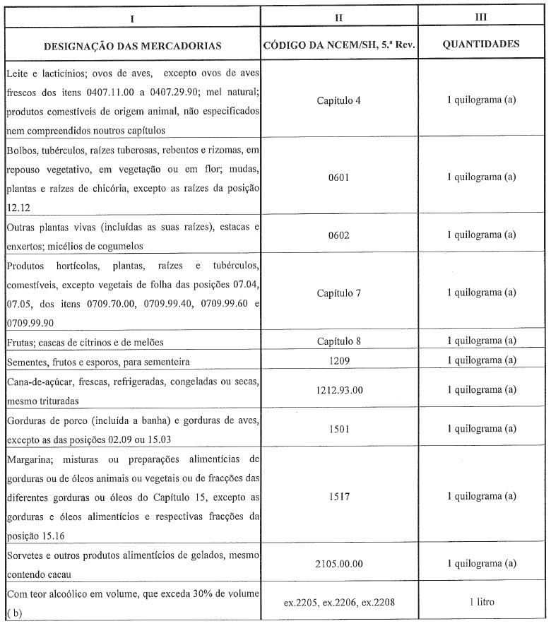 ANEXO I — Tabela de mercadorias destinadas a uso ou consumo pessoal