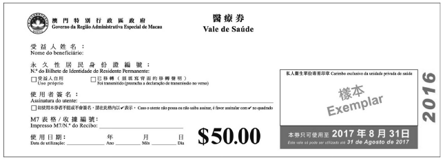 八、醫療券的有效期至二零一七年十二月三十一日,且不得重新轉為有效。