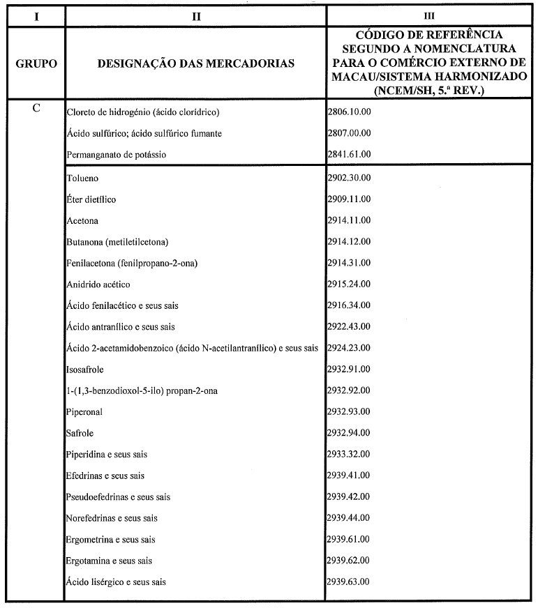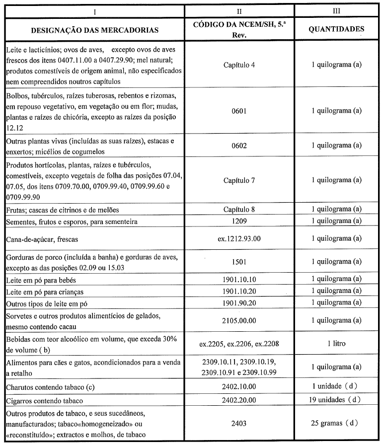 ANEXO I — Tabela de mercadorias destinadas a uso ou consumo pessoal