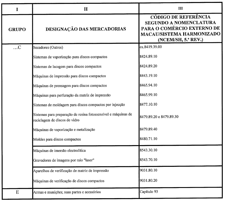 2. São aprovadas as tabelas de exportação e de importação a que se refere o n.º 4 do artigo 9.º da Lei n.º 7/2003 e que são abreviadamente designadas por Tabela A e Tabela B, respectivamente, no anexo II do presente despacho, do qual faz parte integrante.